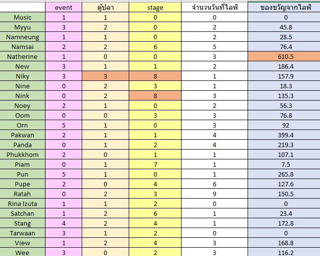 EVENT ออกงานที่มีการร้องการเต้น มีคนดู งานเปิด หรือ ปิด ก็ได้ งาน Road Show แจมงานคอนเสิร์ตชาวบ้าน EXTRA งานที่ไม่ใช่อีเวนต์ทั่วไป ไม่มีร้องเต้น ให้คนดู เช่น