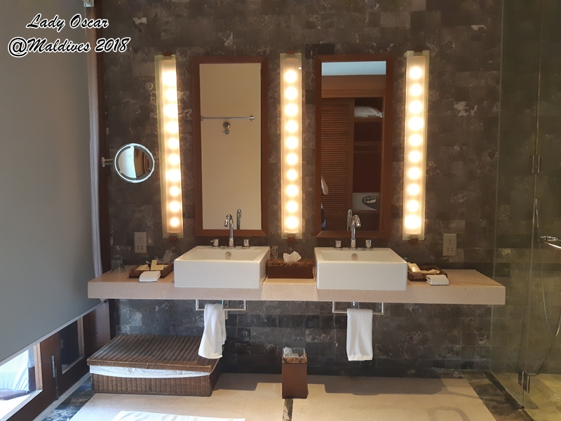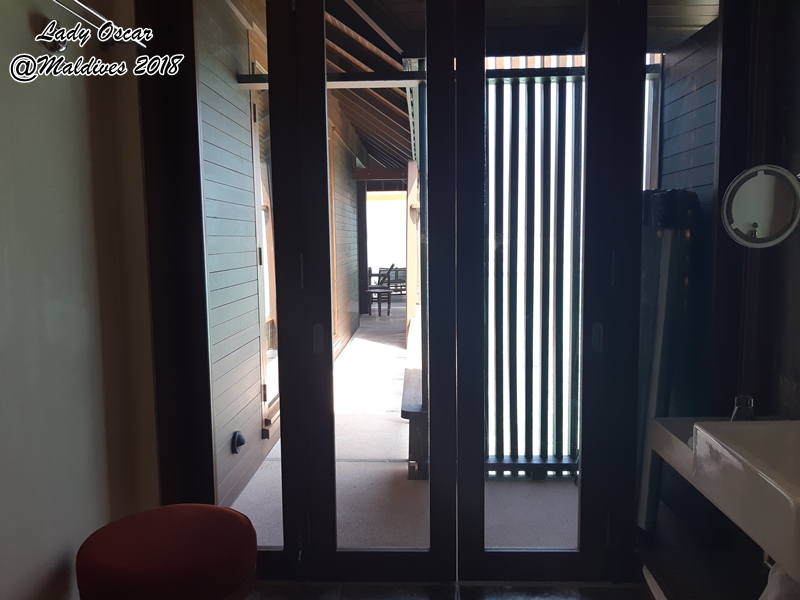 ด้านขวามีประตูบานใหญ่เปิดเข้าไปเป็นห้องน้ำ มีอ่าง 2 ชุด