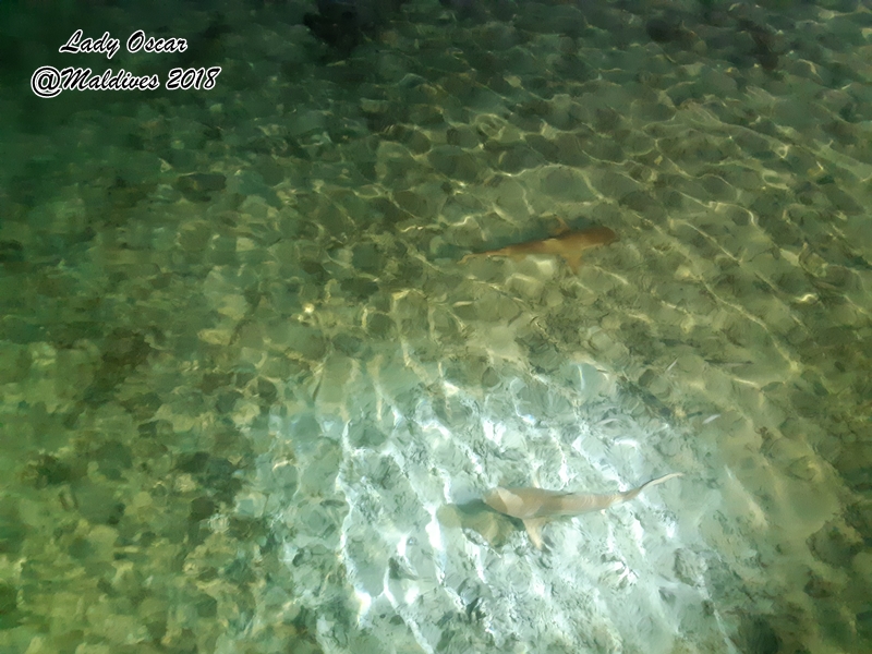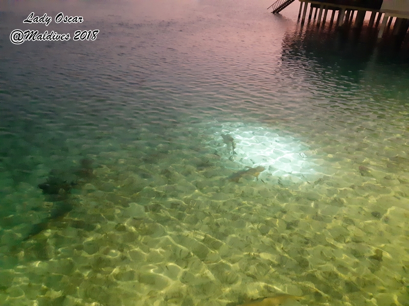 ตอนประมาณ 6 โมงเย็นมีการโชว์ให้อาหารปลาฉลามที่ร้านอาหารตรงสุดทางของโซน Water Villa ด้วย