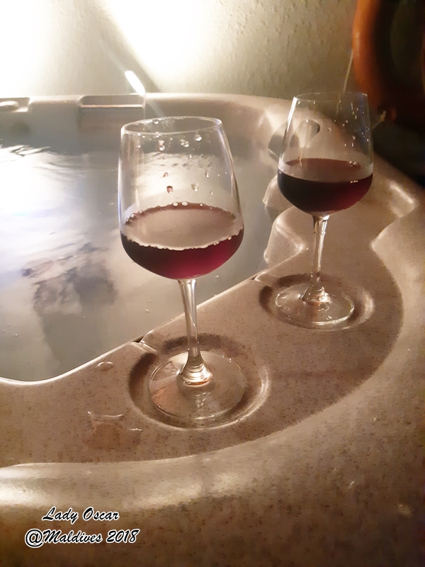 ทานอาหารเสร็จก็ไปแช่จากุซซี่ไป ดูดาวไป จิบไวน์ไป