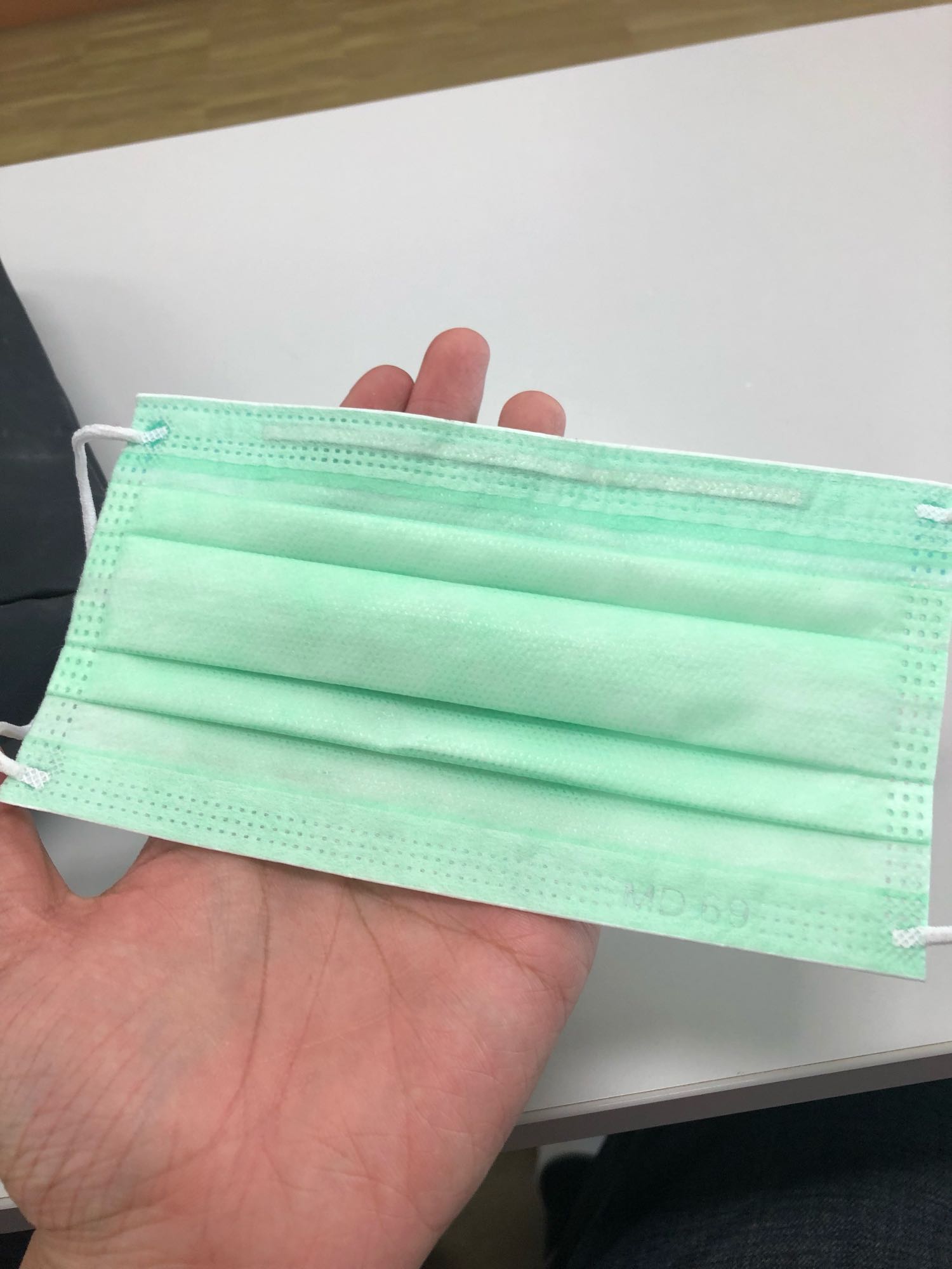 - สีที่พื้นผิว ด้านที่มีสี ในบางยี่ห้อสาก บางยี่ห้อกันน้ำ เวลาไอจาม ถ้าเอาด้านนี้เข้า น้ำจะไหลเปื้อนซึมออกมาข้างนอกง่าย แถมใส่แล้วเจ็บหน้า