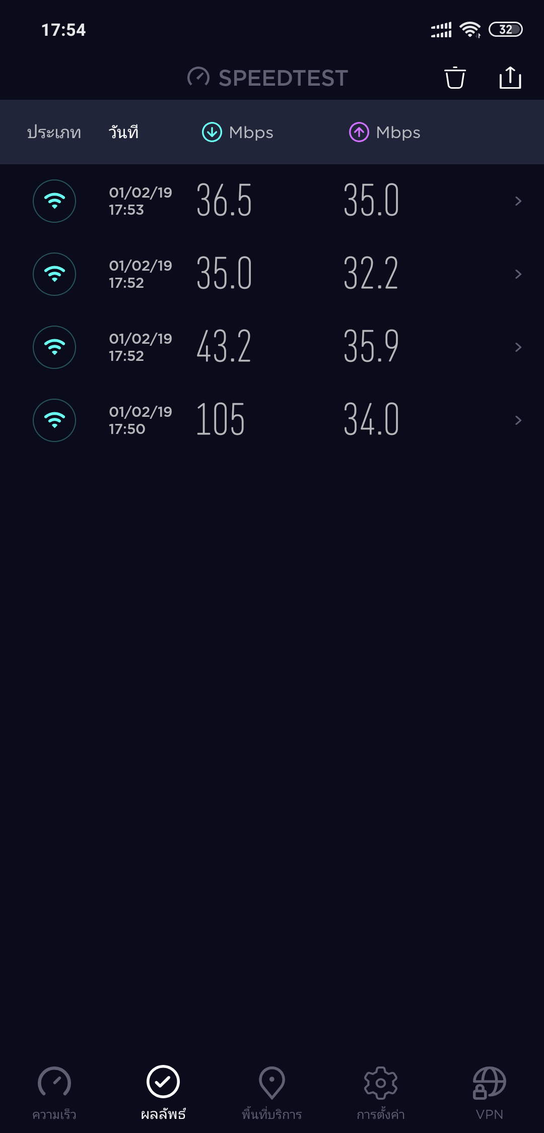 ภาพประกอบทดสอบความเร็ว อันล่างสุดสัญญาณ 5G ส่วน 3 อันบน สัญญาณ 2.4G (ทดสอบโดยใช้โทรศัพท์มือถือ mi8) พิกัดบ้าน เขตบางเขน กทม.