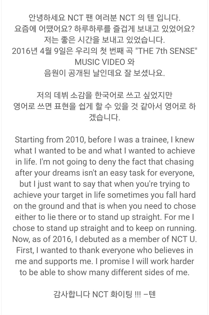 1. แทอิล 14 มิถุนายน 1994 2. จอห์นนี่ 9 กุมภาพันธ์ 1995 3. แทยง 1 กรกฎาคม 1995 4. ยูตะ 26 ตุลาคม 1995 5. คุน 1 มกราคม 1996 6. โดยอง 1 กุมภาพันธ์ 1996 7. เตนล์ 2