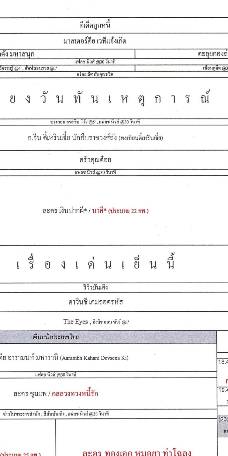 รีรันช่วงเช้า เริ่ม 18 ธ.ค. ข้อมูลจากผังรายการกสทช.