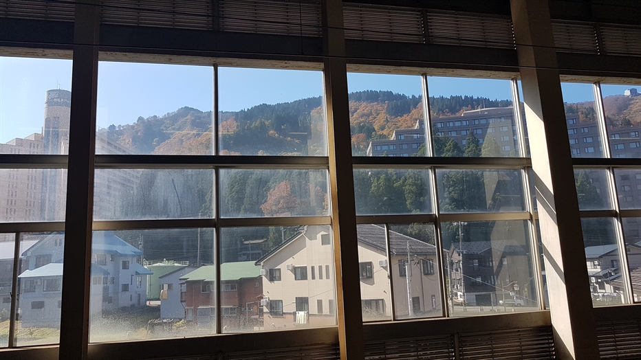 มองออกไปข้างนอก เจอใบไม้เปลี่ยนสีด้วย
