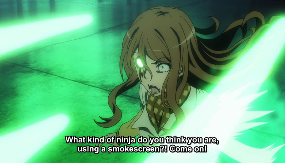 ฝั่งฮามาสึระ หนีทหารติดอาวุธ และเขากำลังจะจนมุมกับTakitsuboอยู่นั้น มีลำแสงสีเขียวยิงมาช่วยพวกเขา ตอนแรกเขานึกดีใจ แต่ทว่าก็ต้องกลับหน้าซีดเพราะว่าเจ้าของลำแสงนั้นคือศัตรูคู่แค้นเขานี่เอง