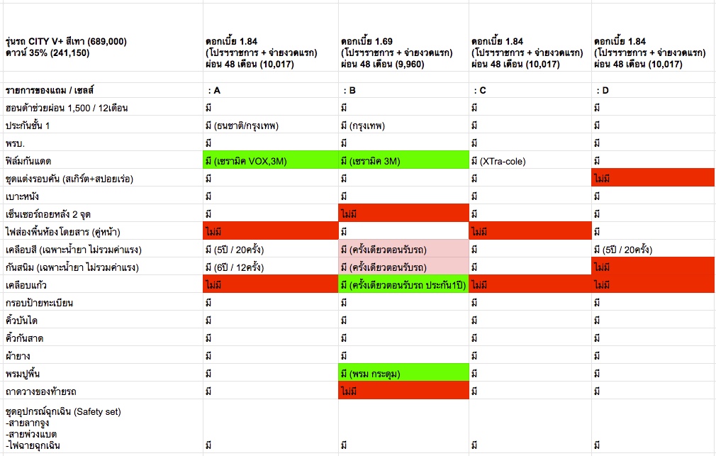 ผมกำลังจะซื้อรถ Honda CITY V+ ตอนนี้กำลังตัดสินใจว่าจะเลือกออกรถกับที่ไหนดี ถ้าเทียบจากของแถม