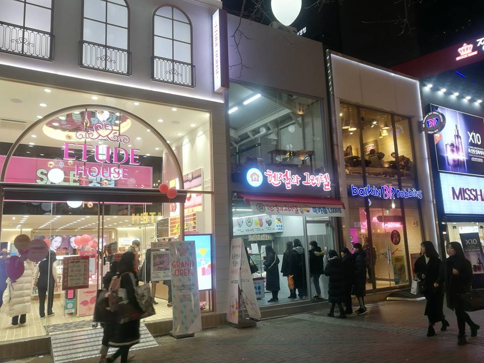 เพียงแค่ข้ามถนนมาเราก็จะเจอกับแหล่งช้อปปิ้ง Dongseongno Market เรียกว่าเป็นแหล่งรวมวัยรุ่นของเมืองแทกูก็ได้ค่ะ เพราะร้านค้าต่างๆ ไม่ว่าเครื่องสำอาง เสื้อผ้า กระเป๋า รองเท้า ฯลฯ รวมตัวกันอยู่ย่านนี้ทั้งหมด ที่สำคัญ ราคาถูกมากๆ รองเท้ายังมีเกือบครบไซส์ ครบรุ่นเลยค่ะ ที่ Dongseongno นี้ บรรยากาศช่วงกลางวัน - กลางคืน จะค่อนข้างแตกต่างกัน กลางวันจะเงียบๆหน่อย กลางคืนจะคึกคักมาก
