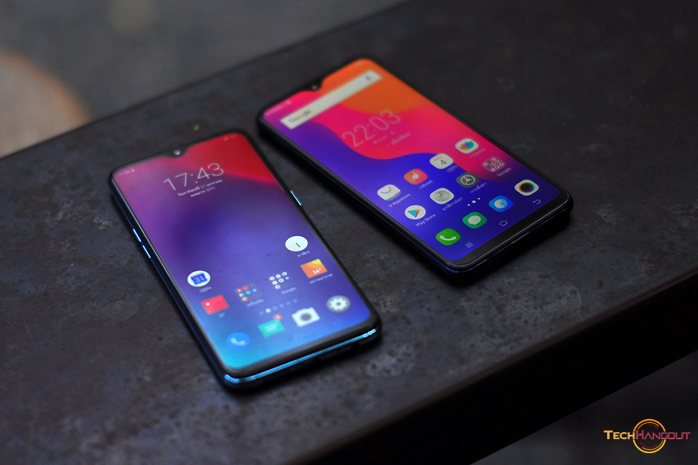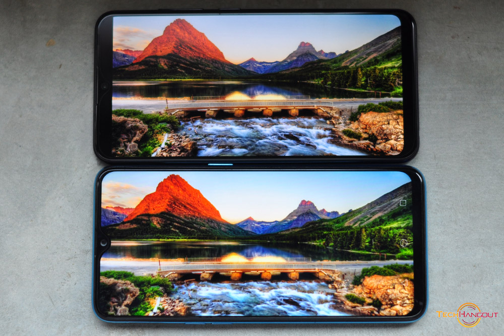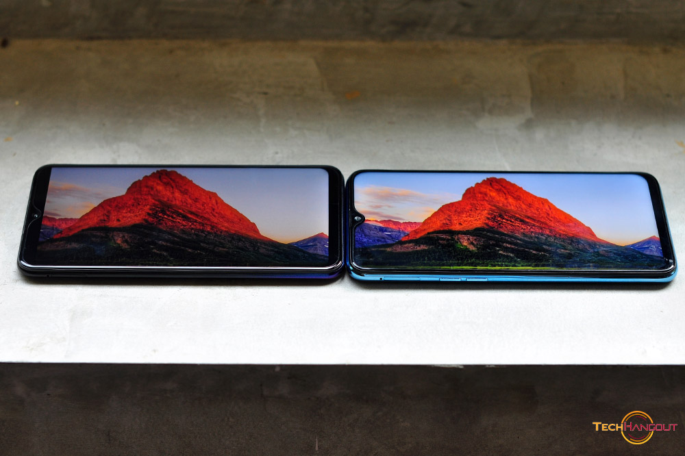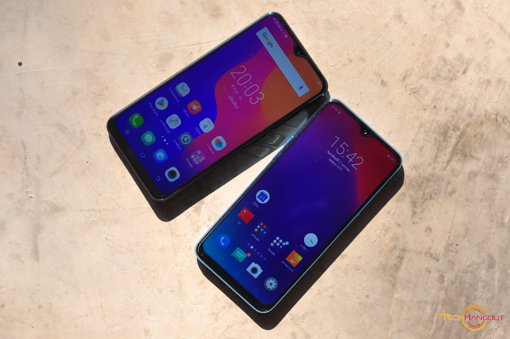 หน้าจอ ทั้ง2รุ่นนี้มีความคมชัดแตกต่างกันแต่ขนาดนั้นพอๆกันครับที่ 6.3 FullHD+ พร้อมติ่งแบบหยดน้ำ และในด้านของ Vivo นั้นเป็นขนาด 6.22 HD+ ครับติ่งหยดน้ำเหมือนกันไม่สามารถปิดติ่งได้นะครับสำหรับในทั้ง 2 รุ่นนี้ดีไซน์ใกล้กันมากๆเลย