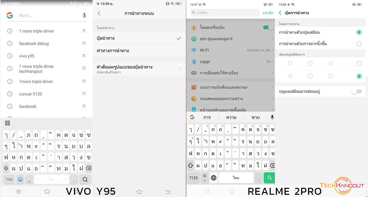คียบอร์ดที่มากับเครื่องนั้นทาง Vivo จะเป็นคีย์บอร์ดอีกแบบนะครับถ้าใครใช้ Vivo ก็น่าจะคุ้นเคยกันดี แต่ทาง Realme จะเป็นคียบอร์ดของ Google ครับอันนี้ก็แล้วแต่ความชอบเลยครับว่าจะถนัดอันไหนอะไรมากกว่า แต่แน่นอนว่าพวกนี้ก็โหลดได้ถ้าเราไม่ถนัดยังไงก็สามารถปรับเปลี่ยนได้ไม่ต้องห่วงครับ ส่วนตัวปุ่มการนำทางทั้งหมดนั้นมีมาให้เหมือนกัน สามารถสลับตำแหน่งได้ สามารถใช้งานแบบเต็มจอได้ แต่ Vivo สามารถปรับแต่งตัวไอคอนได้ครับว่าจะชอบหน้าตาแบบไหน