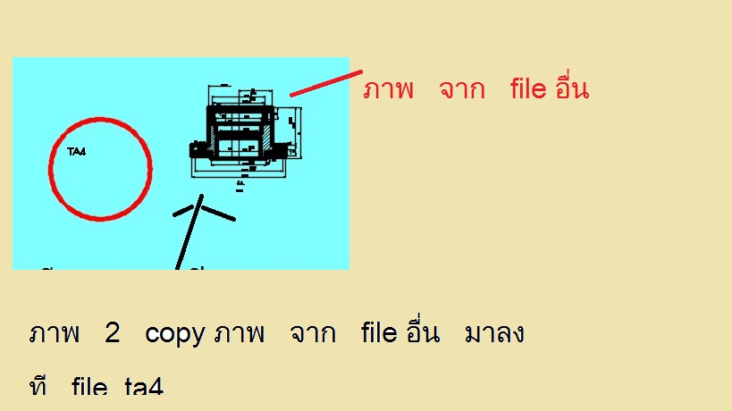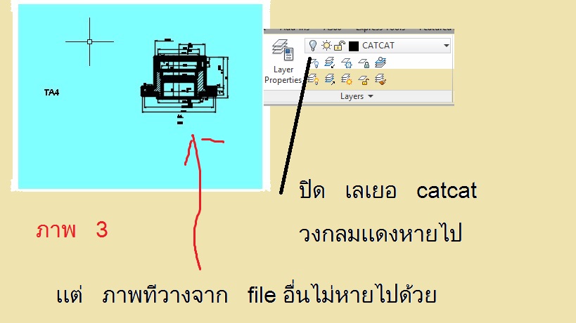 ออโตแคด ที file ta4 ภาพ 2 มีวงกลมสีเเดง อยู่ใน เลเยอ catcat