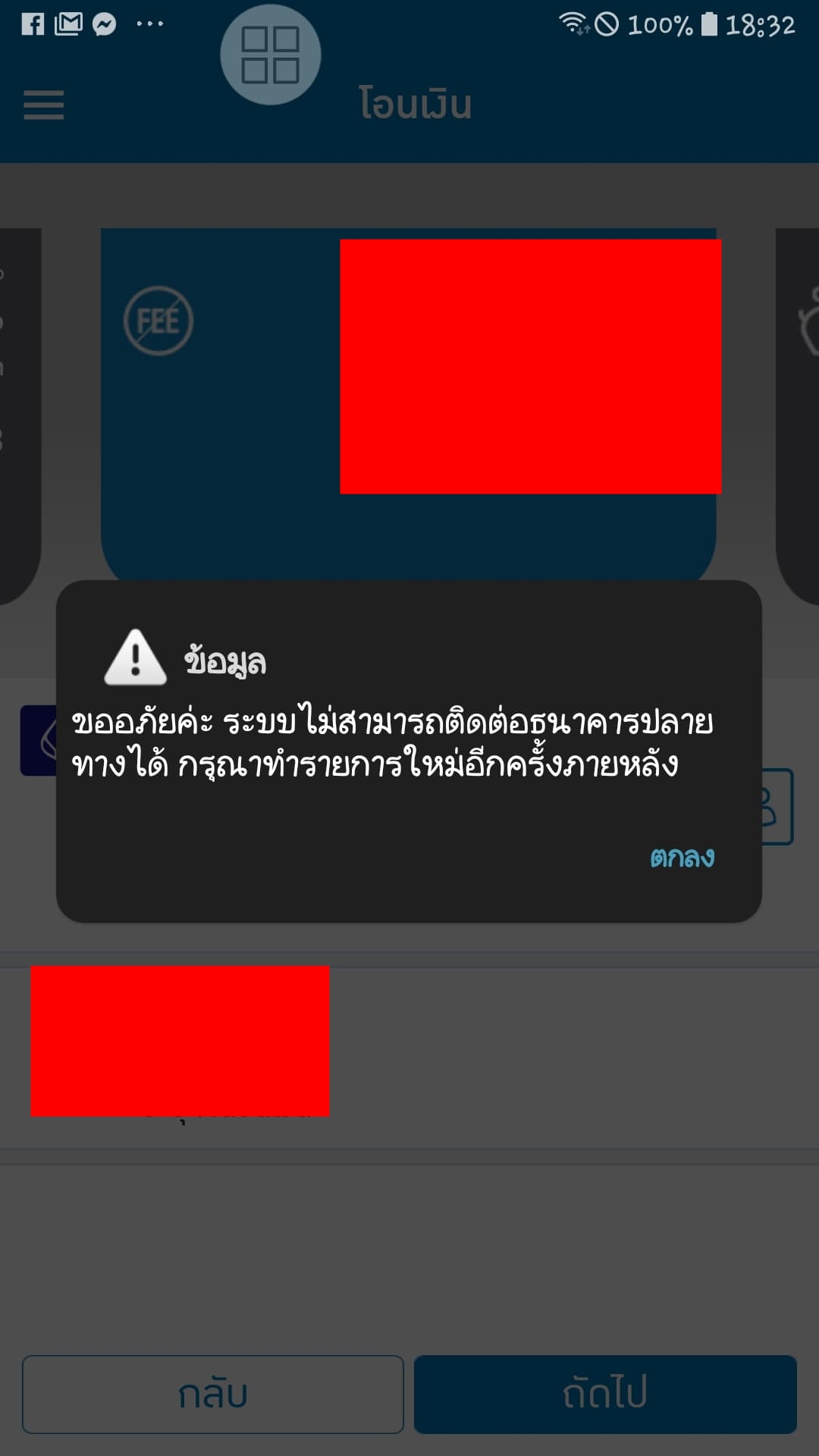 โอนเงินเข้าบัญชีไม่ได้ ระบบล่ม??