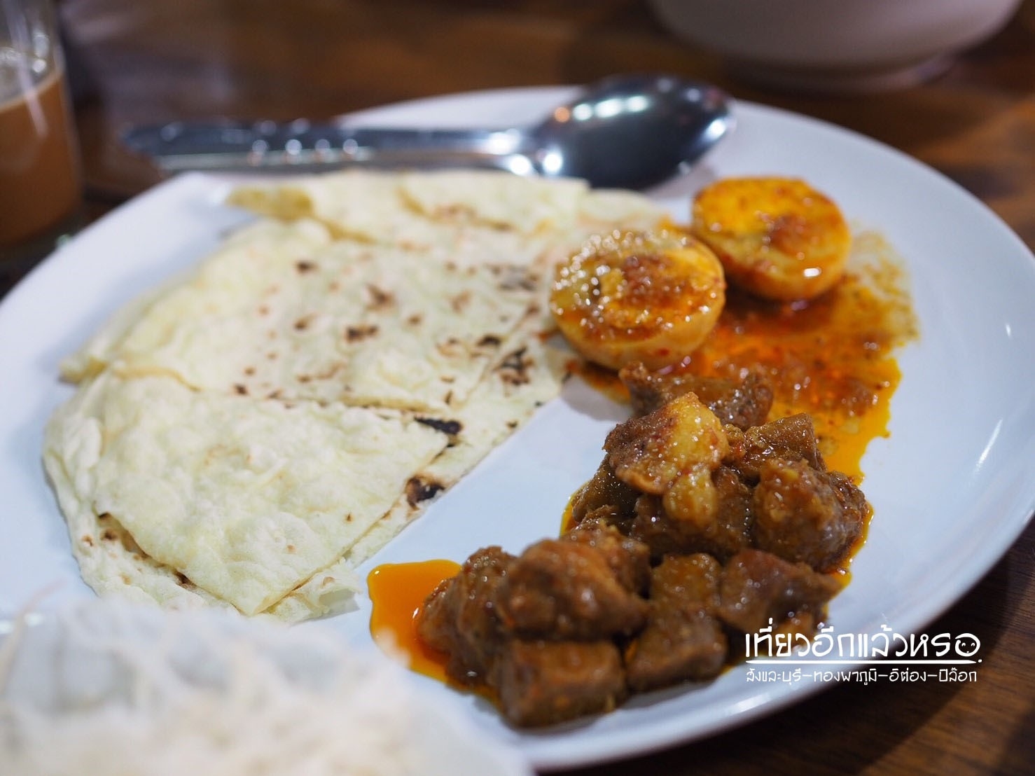 โรตีอบโอ่ง ราดน้ำแกงฮังเลแบบมอญ