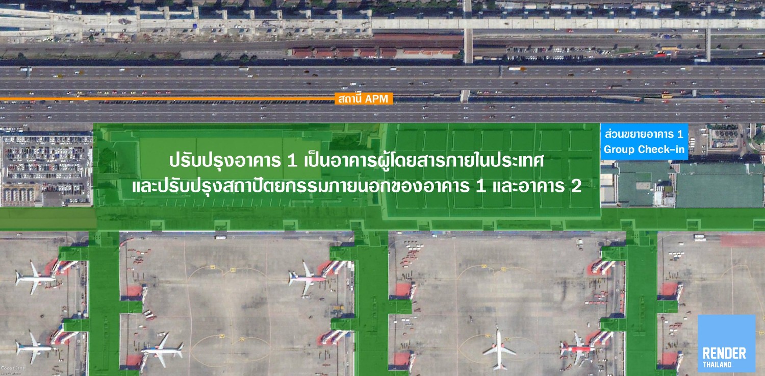 ส่วนของสนามบินตอนนี้กำลังออกแบบและทำ EIA ปรับปรุงหลายอย่าง มีทั้งการรื้ออาคารในประเทศหลังเก่าแล้วสร้างอาคารใหม่บริเวณระหว่างอาคารจอดรถที่ติดอาคารสองถึงอาคารในประเทศหลังเก่า(ตรงกับสถานีรถไฟฟ้าดอนเมือง) ปรับปรุงอาคาร 1 เป็นอาคารภายในประเทศแทน สร้างรถไฟฟ้าวิ่งเชื่อมแต่ละอาคารภายใน