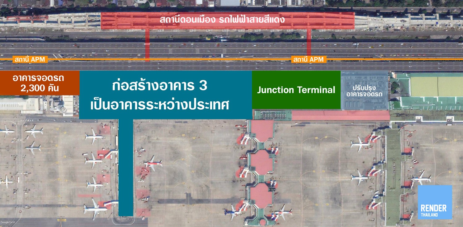 เมื่อเสร็จทั้งหมดสถานีดอนเมืองจะตรงกับอาคารผู้โดยสารระหว่างประเทศ ทางเชื่อมด้านนึงเชื่อมเข้าอาคารโดยตรง ทางเชื่อมอีกด้านนึงจะเชื่อมผ่าน Junction Terminal (เป็นอาคารที่มีร้านค้าสำนักงานต่าง ๆ) มีสถานีรถไฟฟ้าขับเคลื่อนอัตโนมัติ สามารถไปอาคารผู้โดยสารภายในประเทศ และอาคารจอดรถต่าง ๆ ได้ครับ