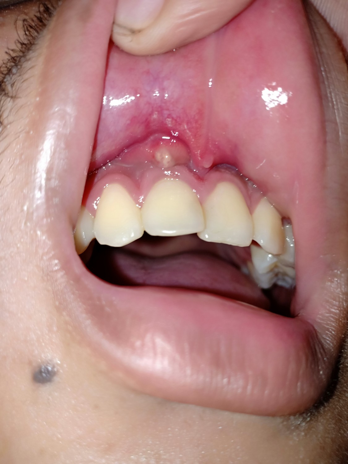 ก่อนที่จะเริ่มเป็นมีอาการหนักๆหน่วงๆฟัน พอวันถัดมาเหงือกเขียว วันที่3 ปากบวม วันที่ 4 เป็นหนอง ตามในรูป
