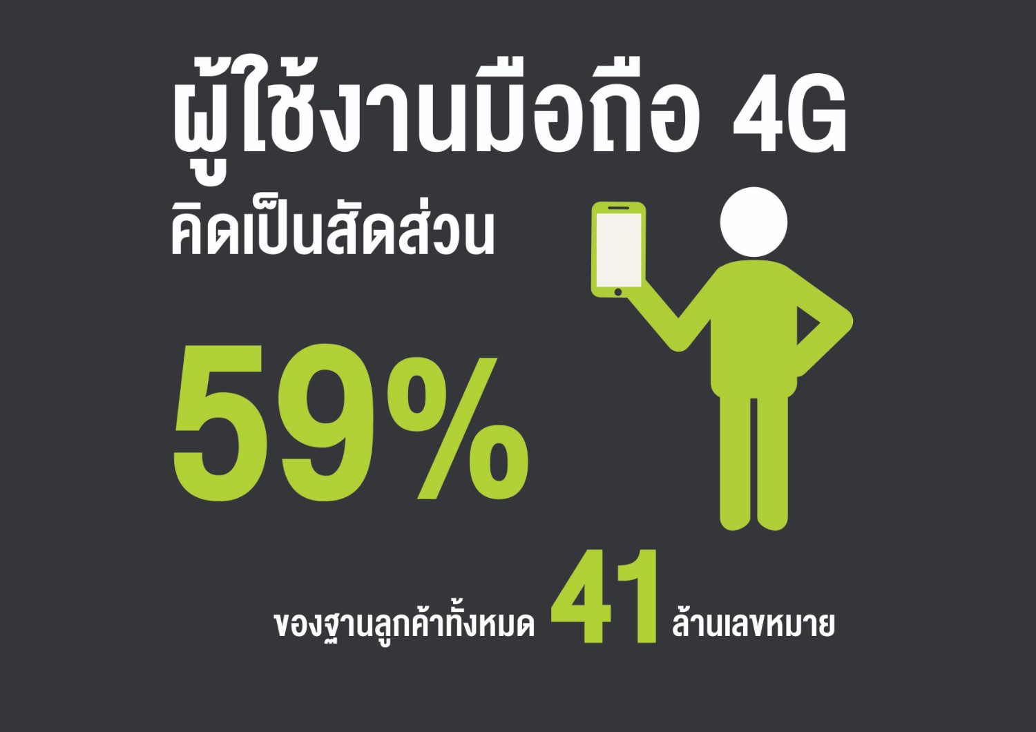 มีจำนวนลูกค้าที่ใช้งาน 4G เพิ่มขึ้นต่อเนื่องเป็นร้อยละ 59 ดาต้ายังคงเพิ่มขึ้นเป็น 11 กิกะไบต์/เลขหมายที่ใช้งานดาต้า/เดือน