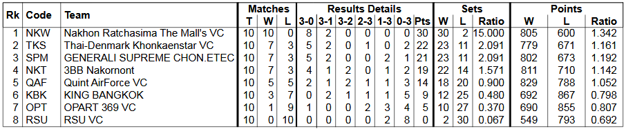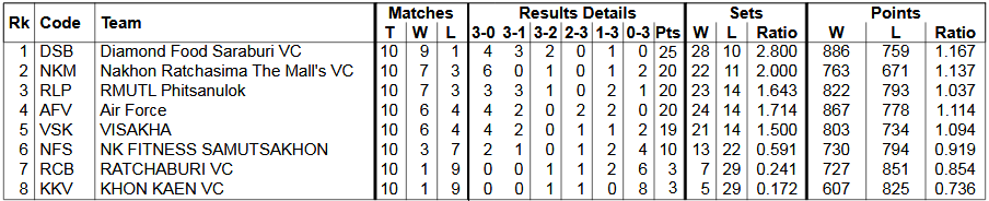 ประเภท ทีมชาย ประเภท ทีมหญิง เครดิต: http://cdn.thaivolleyball.co.th/comp/2019/vtl/vtl2019-bulletin-week-8.pdf