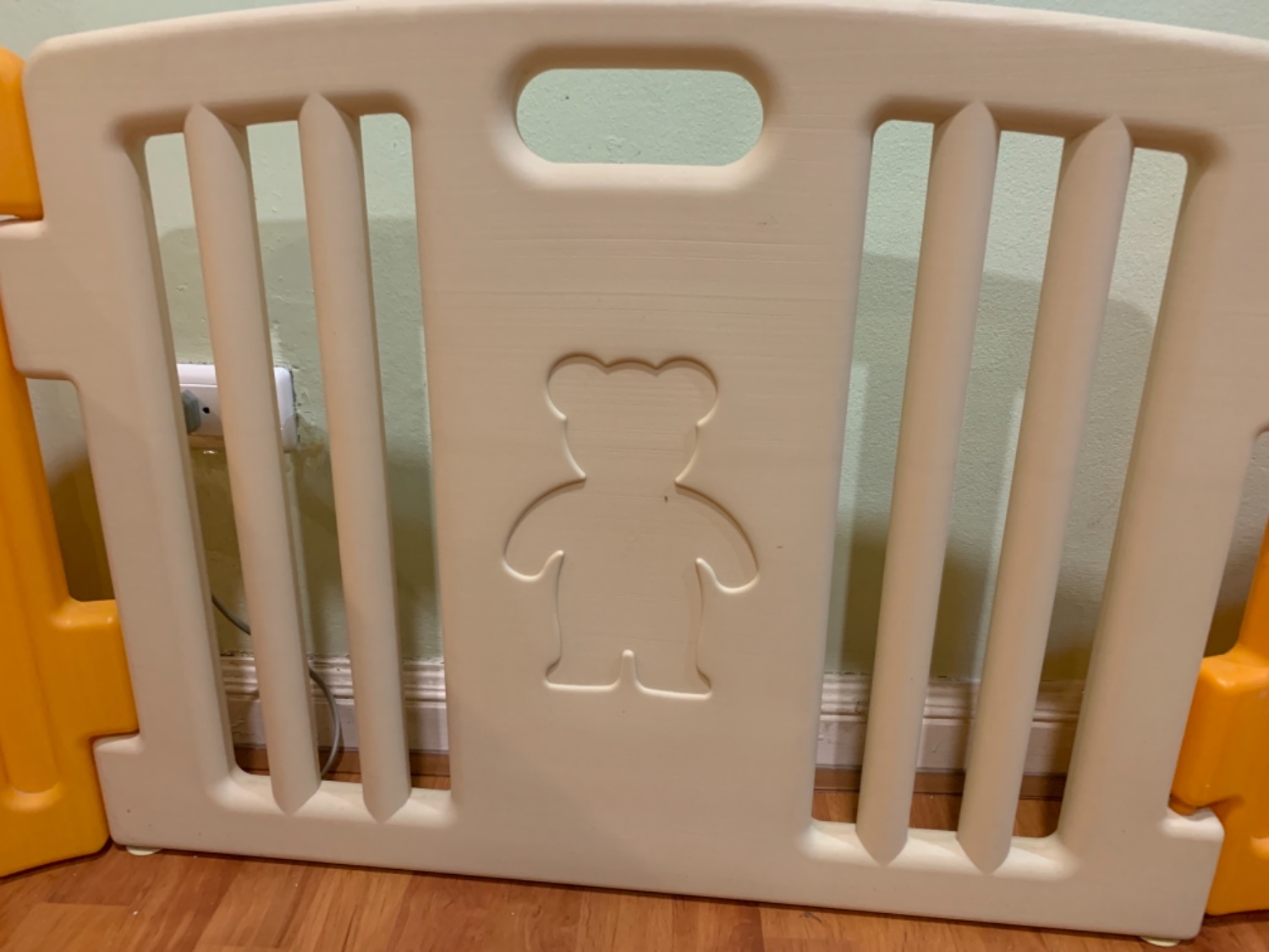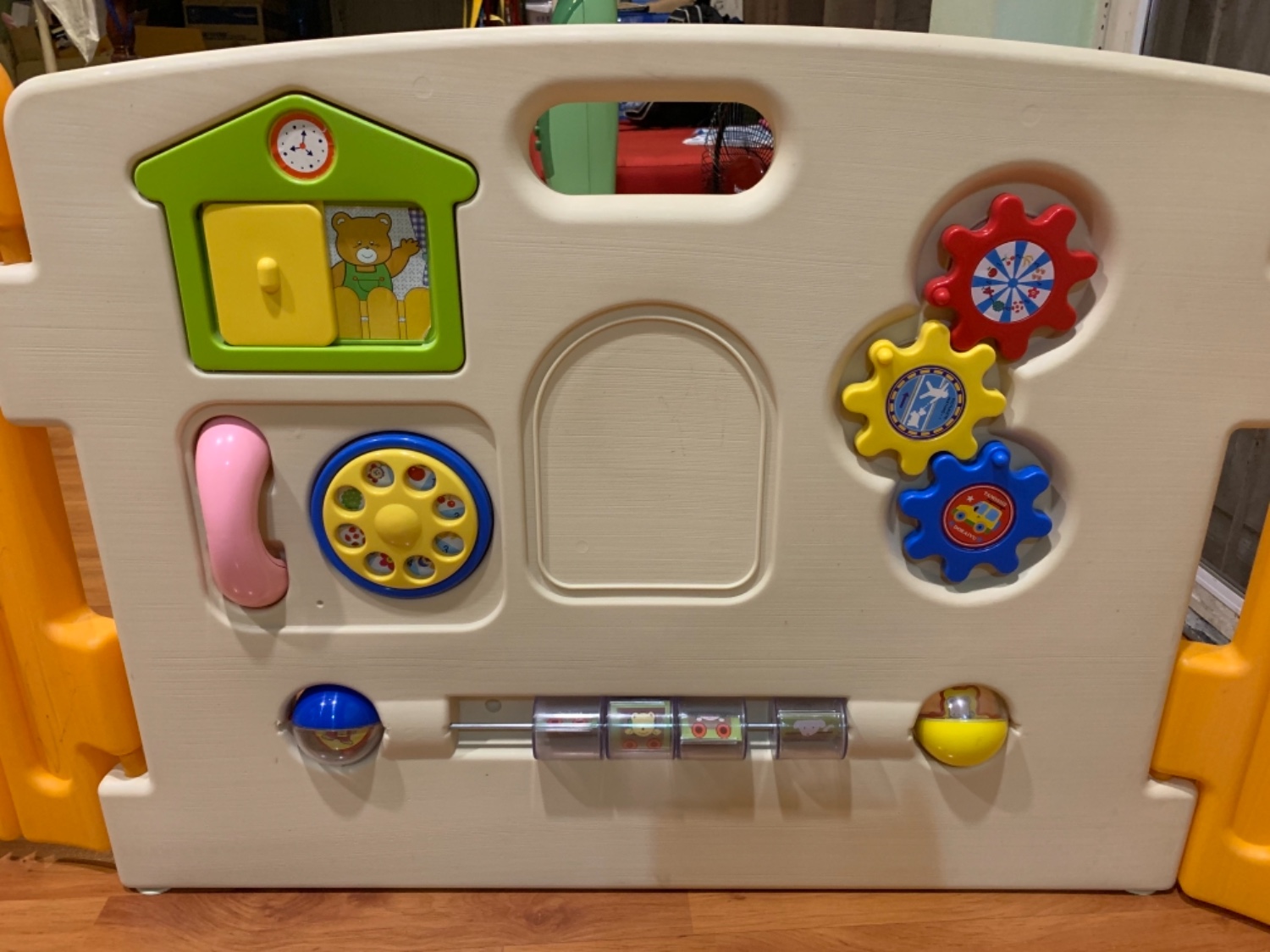 ส่งต่อคอกกั้นเกาหลียี่ห้อ haenim size L 217*217cm สภาพดี ของเล่นและประตูใช้การได้ปกติ ขาดแต่สอบิกเกอร์รูปหมี. สามารถใส่ที่นอน 3.5ฟุตได้สองแผ่น