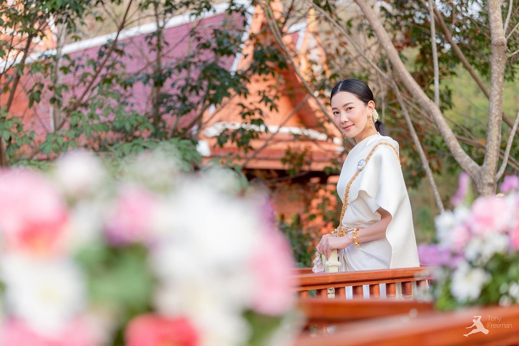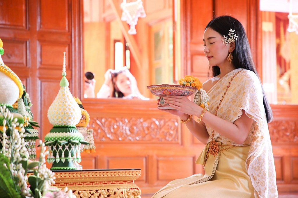 งามอย่างไทย! นุ่น วรนุช แต่งชุดไทยทำบุญ ณ วัดป่าธรรมคีรี