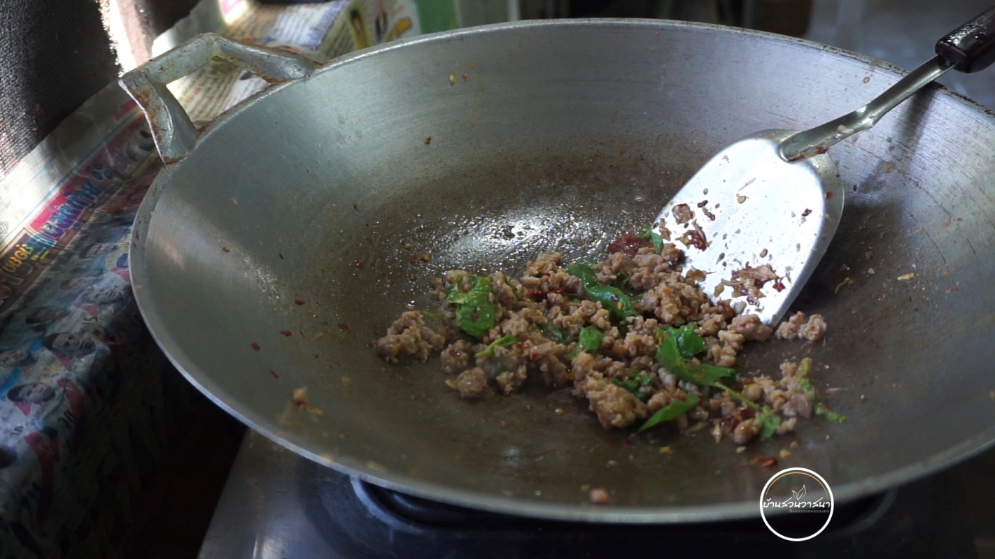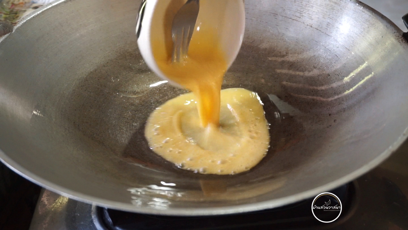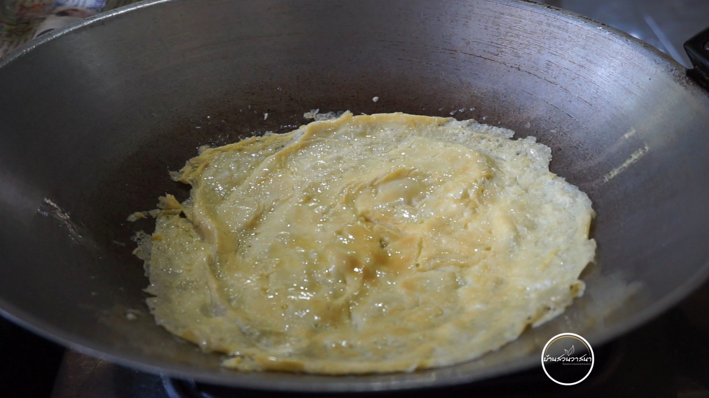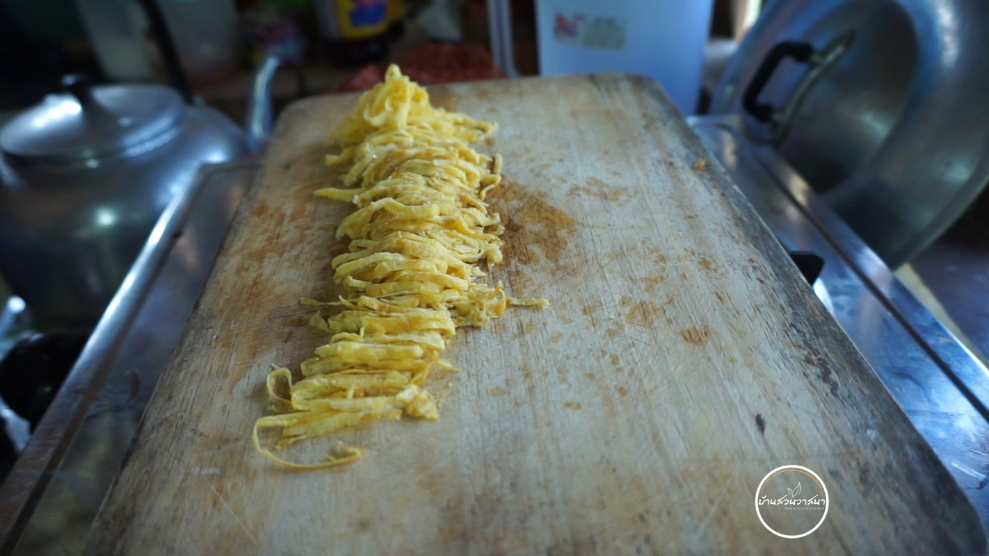 ทำไข่เส้นก่อน ไข่ไก่ 1 ฟอง ไม่ต้องปรุงรส