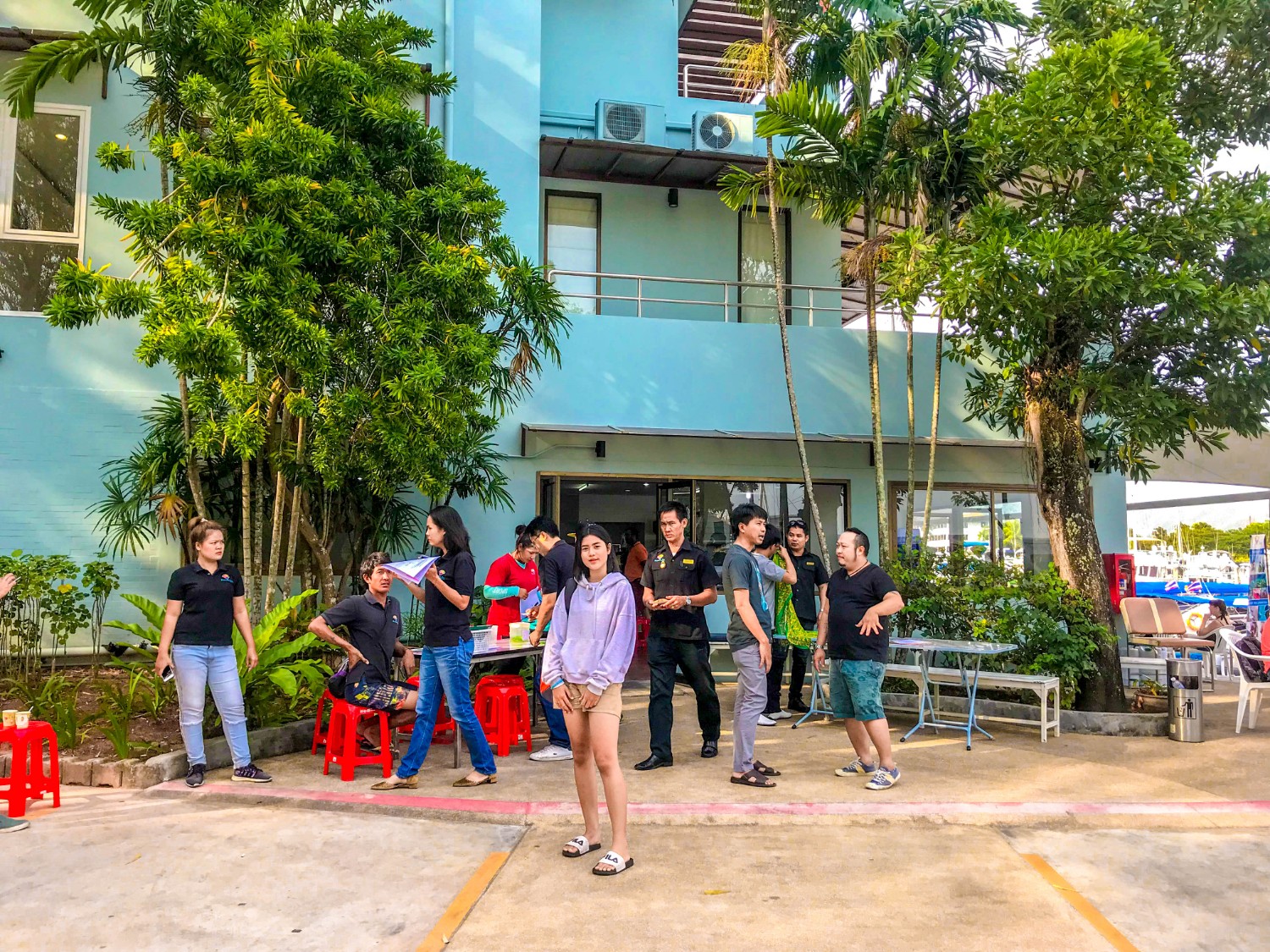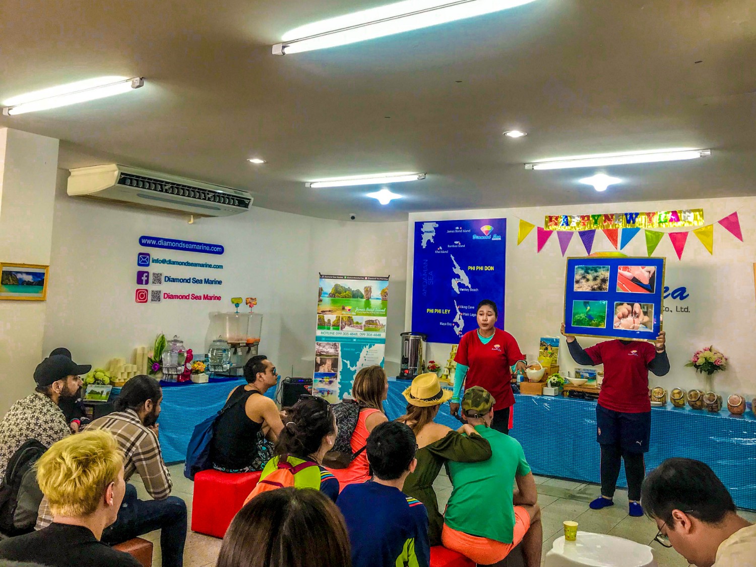 ช่วงเวลานี้ไกด์มาให้คำแนะนำเกี่ยวกับทริป และช่วยลูกค้าเลือกอุปกรณ์ที่ใช้ในการดำน้ำต่างๆ