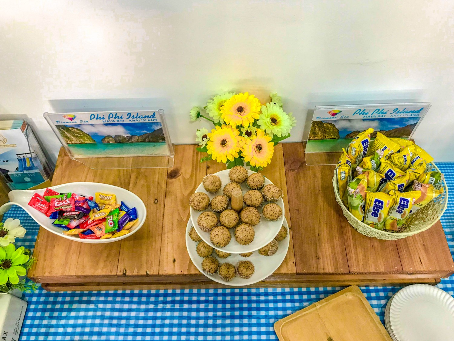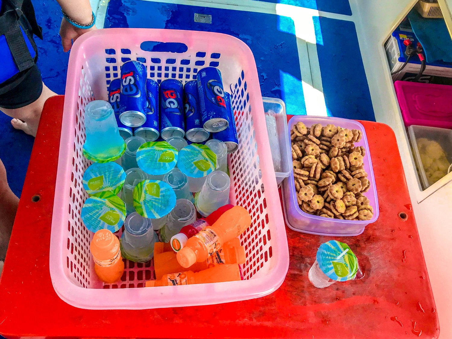 บนเรือก็ยังมีบริการขนม น้ำไว้ให้รับประทานเล่นด้วยนะ