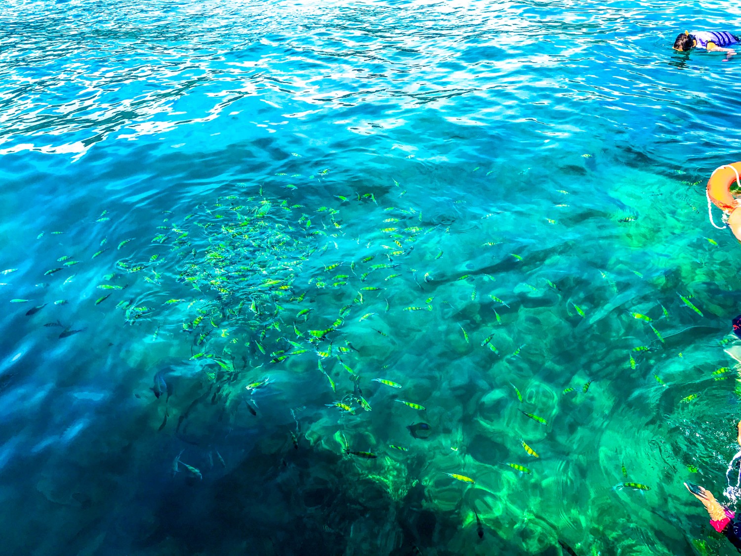 จุดต่อไป อ่าวมาหยา บอกเลยว่าสวยมาก น้ำใส มีปลาเล็กว่ายไปมา