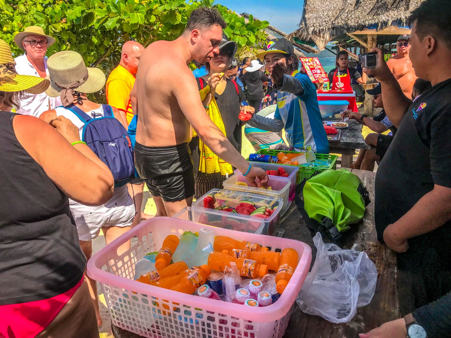 อากาศร้อน ทานผลไม้ น้ำเย็นๆ สดชื่นหน่อย มีแรงได้ไปว่ายน้ำ ถ่ายรูป ทางเรือก็มีผลไม้ น้ำ พร้อมเอาเสิร์ฟถึงเกาะกันเลย