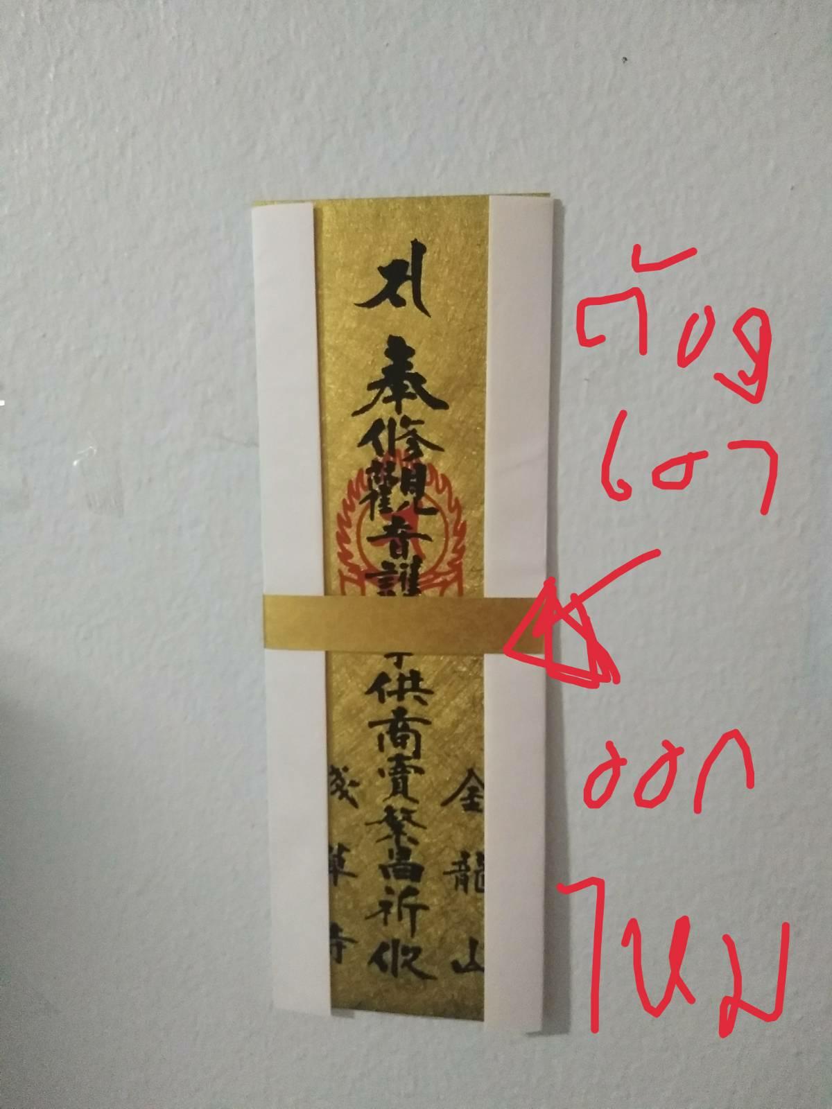 ซื้อยันต์มาจากวัดอาซากุสะ สงสัยว่าเส้นสีทองที่คาดยันต์ไว้นี่ต้องตัดออกไหม