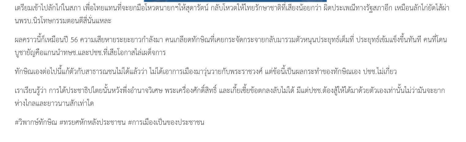 นี่คือความต้องการของประชาชน ส่วนหนึ่ง ระบอบประชาธิปไตยที่แท้จริง ต้องมาจากเลือกตั้งและใช้รัฐสภาเป็นทางแก้ปัญหา ประชาชนไม่เอาชนกลุ่มน้อยที่ไม่เคารพกฎหมายค่ะ