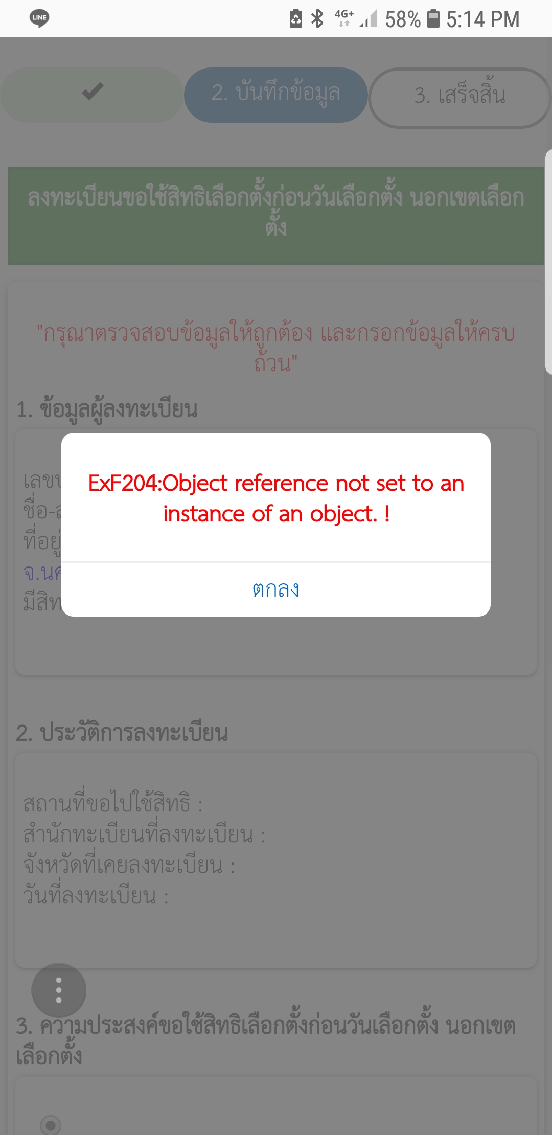 ลงทะเบียนเลือกตั้งล่วงหน้าทาง web ไม่ได้ค่ะ ตามรูป ต้องแก้ไขอย่างไรคะ