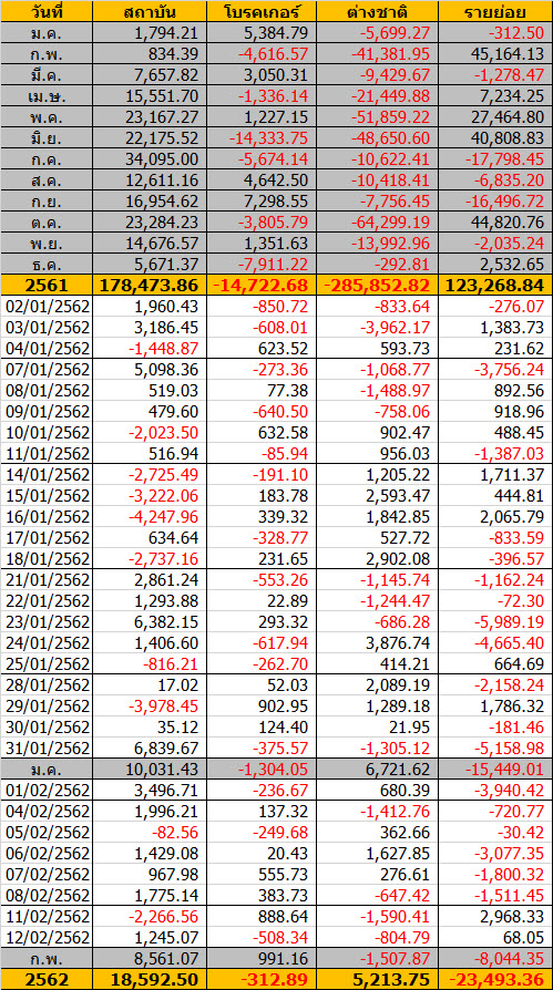 Sinthorn Summary 25/2/2562 : ต่างชาติขายสุทธิ -7.98 ลบ.