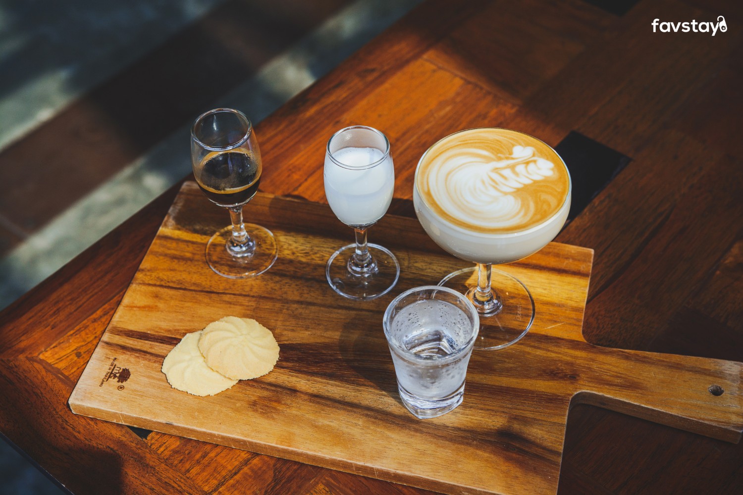 คาเฟ่ที่ถูกห้อมล้อมด้วยต้นไม้และธรรมชาติ มีเสียงนกร้องขณะที่คุณกำลังนั่งจิบกาแฟยามเช้า สำหรับใครที่ชื่นชอบธรรมชาติ ไม่ต้องลังเลที่จะมาลิ้มลองรสชาติของกาแฟคั้วก่อนจะไป