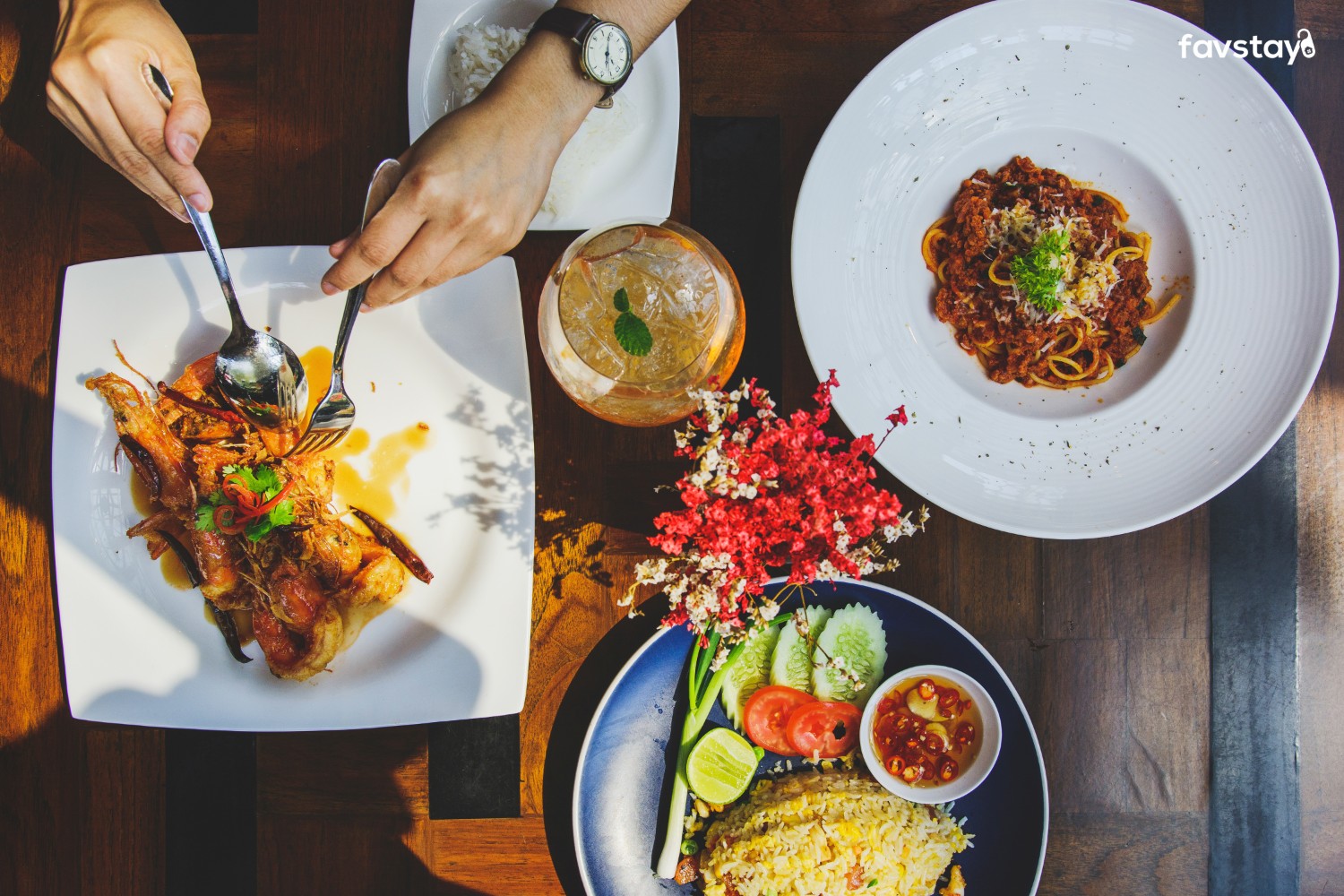 อาหารฟิวชั่น ซึ่งส่วนประกอบหลักของอาหารมักจะเป็นอาหารทะเล ส่วนคาเฟ่ เครื่องดื่มที่นิยมสั่งมากที่สุดคงจะไม่พ้นกาแฟ กาแฟที่ recommend ก็จะเป็น Deconstructed Latte ถูกเสิร์ฟมาบนแผ่นไม้ ประกอบไปด้วยเครื่องดื่ม 4 แก้วด้วยกัน เครื่องดื่มแต่ละแก้วถูกใส่ในภาชนะที่ดูดึงดูดมากๆ สองแก้วแรกก็คือเอสเปรสโซ๋และนมสดร้อน ตามด้วยลาเต้ที่ถูกใส่ในแก้วมาการิต้า ปิดท้ายด้วยโซดาที่ใส่ในแก้ววอดก้าล้างปาก เชื่อเถอะว่าคาเฟ่แห่งนี้จะทำให้ผู้ที่มาเยือนรู้สึกผ่อนคลายและอิ่มเอมกับอาหารที่ถูกปาก