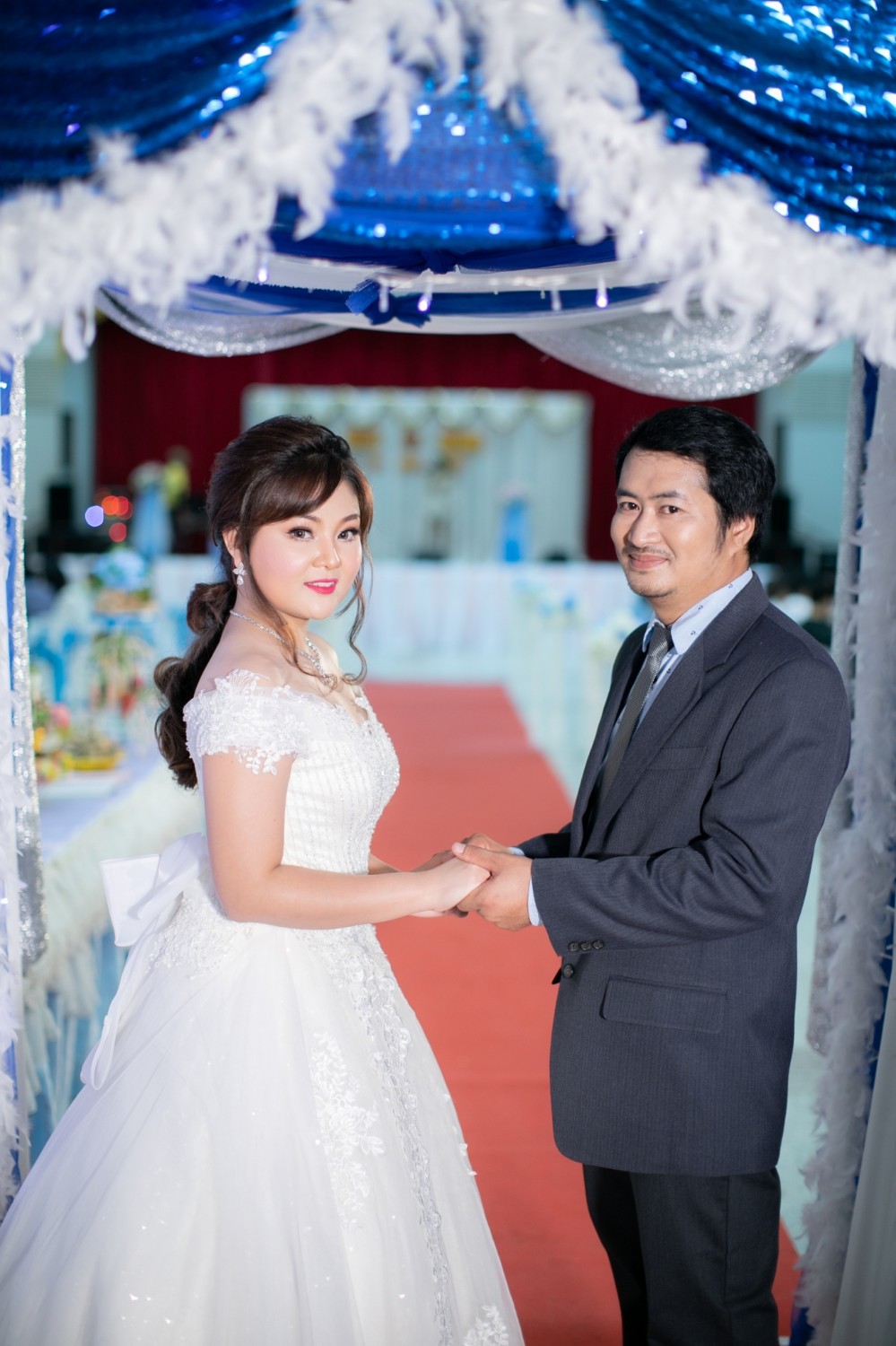 - งานเย็น เช่าจากร้าน Bezirsweddingstudio แถวๆ รามอินทรา อันนี้ราคาเช่าแค่ชุดเจ้าสาวและเครื่องประดับนะคะ 10,000 บาท เพราะชุดเจ้าบ่าวยืมเพื่อน
