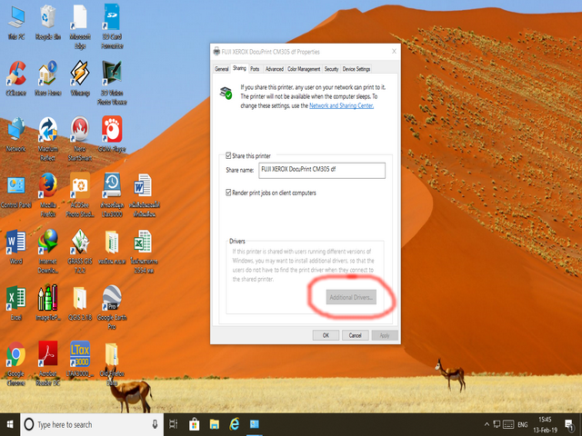 ผมจะแชร์ปริ้นเตอร์จากเครื่องที่ลง windows 10 ไปเครื่องที่ลง windows 7 ,8 แต่ไม่สามารถเลือก Additonl Drivers ได้ ผมต้องทำยังไงครับติดขั้นตอนนี้ก็ไปขั้นตอนต่อไปไม่ได้รบกวนด้วยครับ