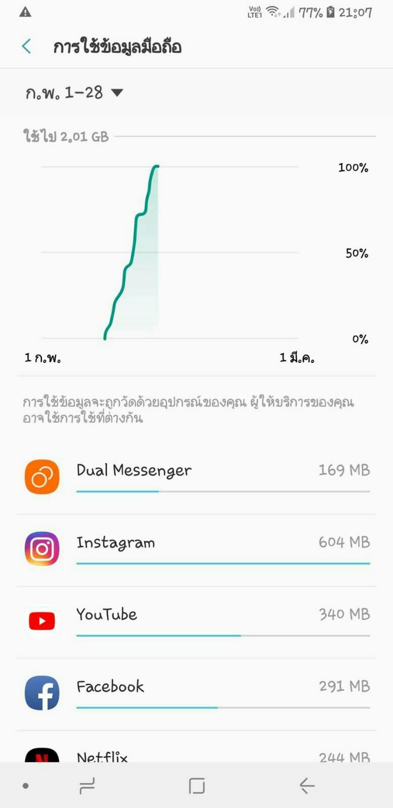 โทรศัพท์ขึ้นแจ้งเตือนการใช้ข้อมูลเกิน 2.0 GB