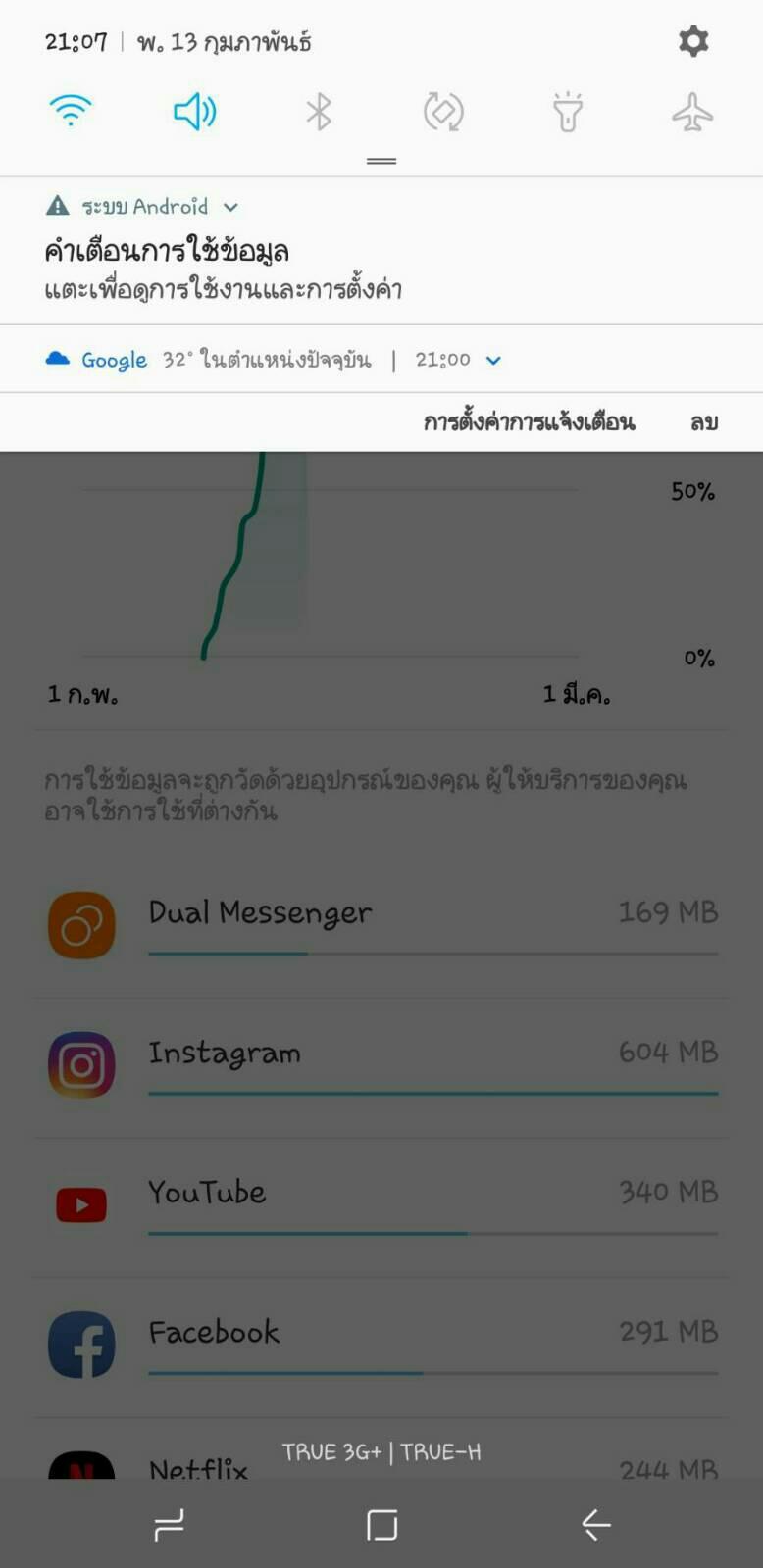 อยากปิดแจ้งเตือน "คำเตือนการใช้ข้อมูล" ใน Samsung a7 2018 สาเหตุเป็นเพราะอะไรครับ