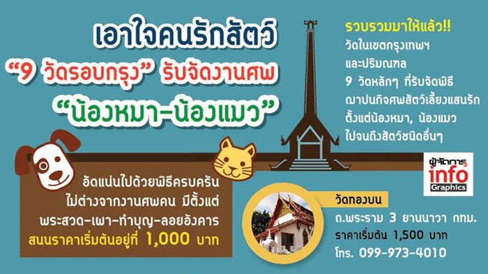..." เอาใจคนรักสัตว์ “9 วัดรอบกรุง” รับจัดงานศพ “น้องหมา-น้องแมว ”...