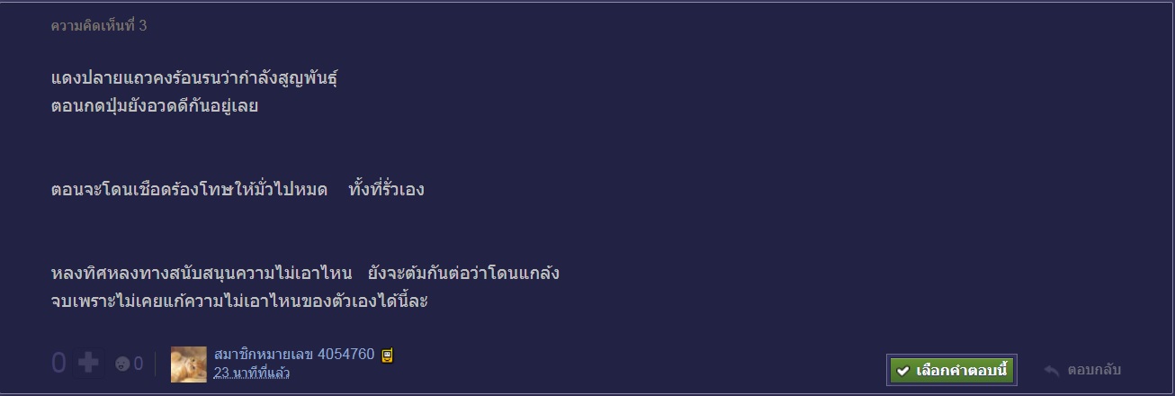 ตอบโต้กลับ ก็เป็นการทะเลาะกันเท่านั้น ไม่มีใครอยากเอาไม้สั้นไปแหย่หรอกครับ