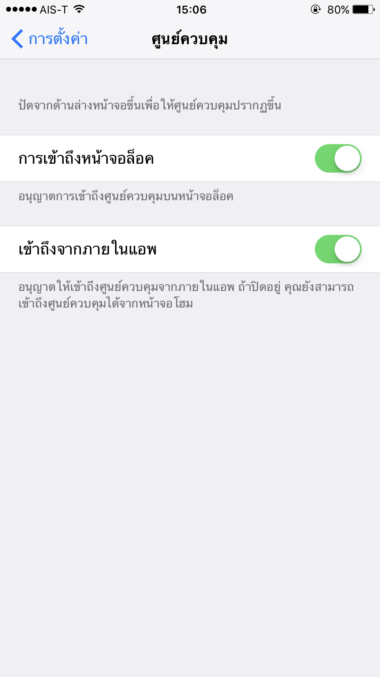 ทำไมถึงปรับแต่งศูนย์ควบคุมไอโฟนเองไม่ได้คะ