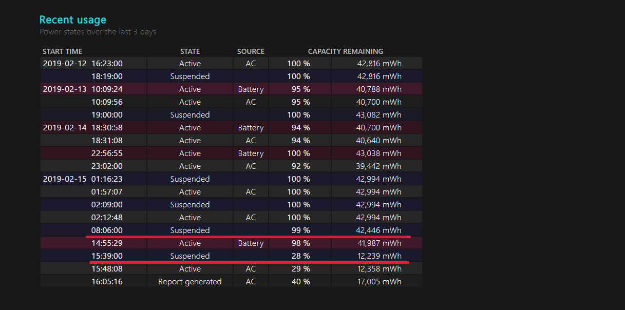 รายงานการใช้แบตเตอรี่ครับ ดังรูปมันชอบดับตรงที่ขีดเส้นแดงอ่ะครับ