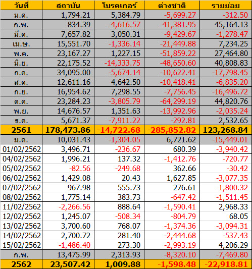Sinthorn Summary 15/2/2562 : ต่างชาติขายสุทธิ -2,993.19 ลบ.