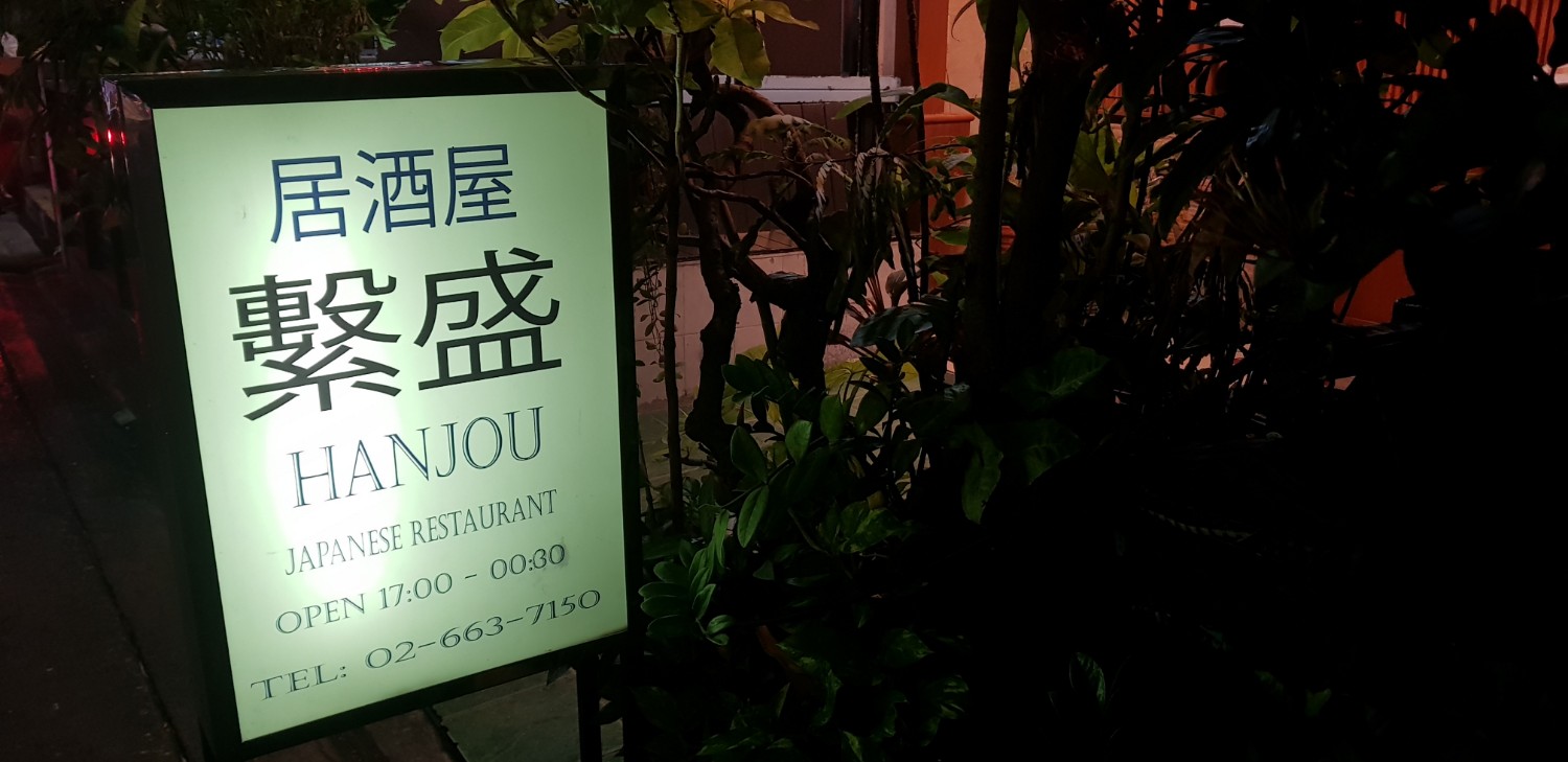 เป็นร้านอาหารญี่ปุ่น เล็กๆขนาด 1 คูหา กลางซอย สุขุมวิท 20 ชื่อว่า Hanjou Japanese Restaurant & Izakaya