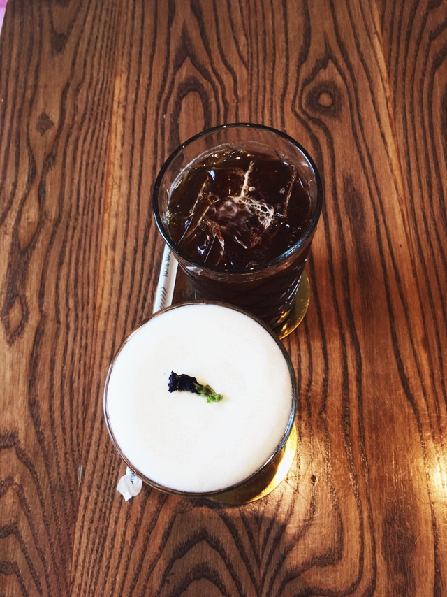 แก้วที่มีฟองนม คือ ชาไทย (สำหรับเรา คิดว่า รสชาติ อร่อย กลมกล่อม หวานกำลังดีแล้วนะคะ)
