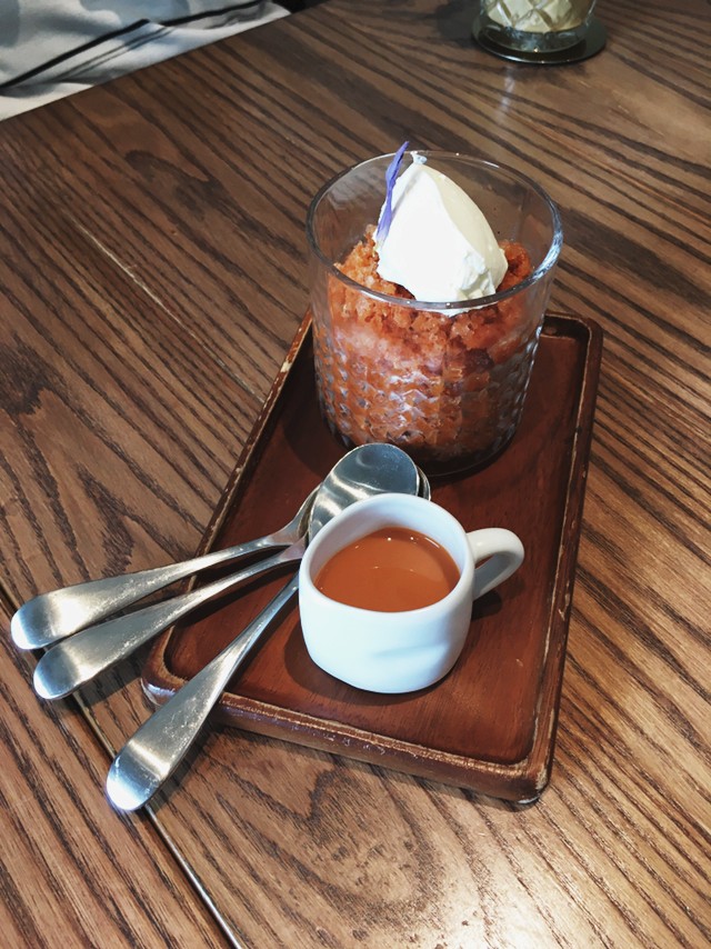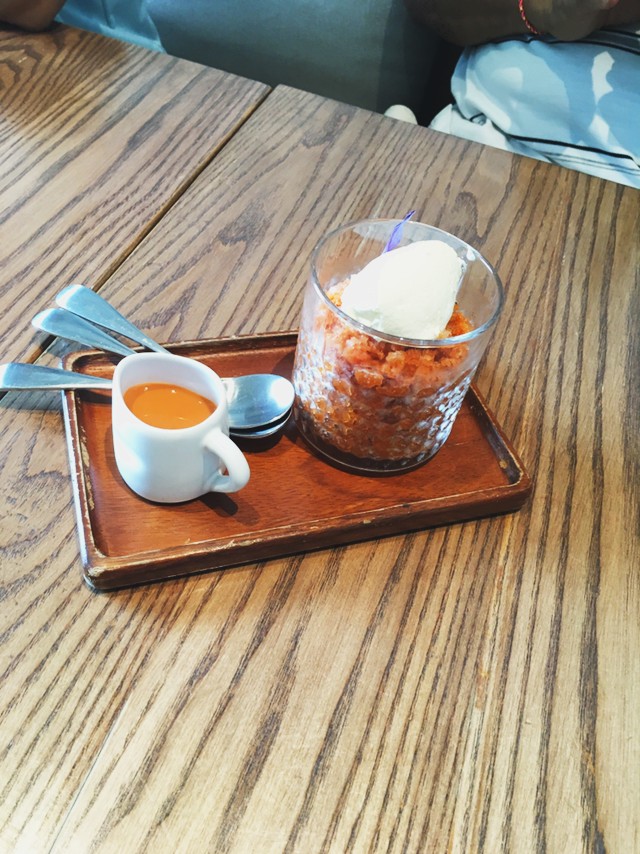 ส่วนอันนี้ ชื่อว่า "Granita Cha Thai" เป็นเกล็ดน้ำแข็งรสชา ด้านบนสีขาวไม่แน่ใจว่าคืออะไร แต่