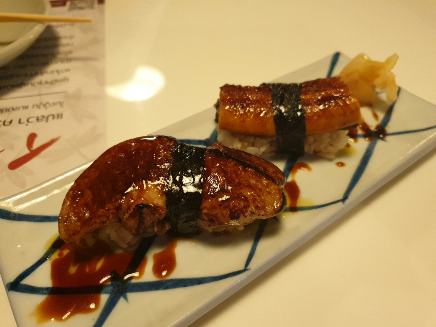 ซูชิหน้าปลาไหลและฟัวส์กราวส์ค่ะ รสชาติดีมาก