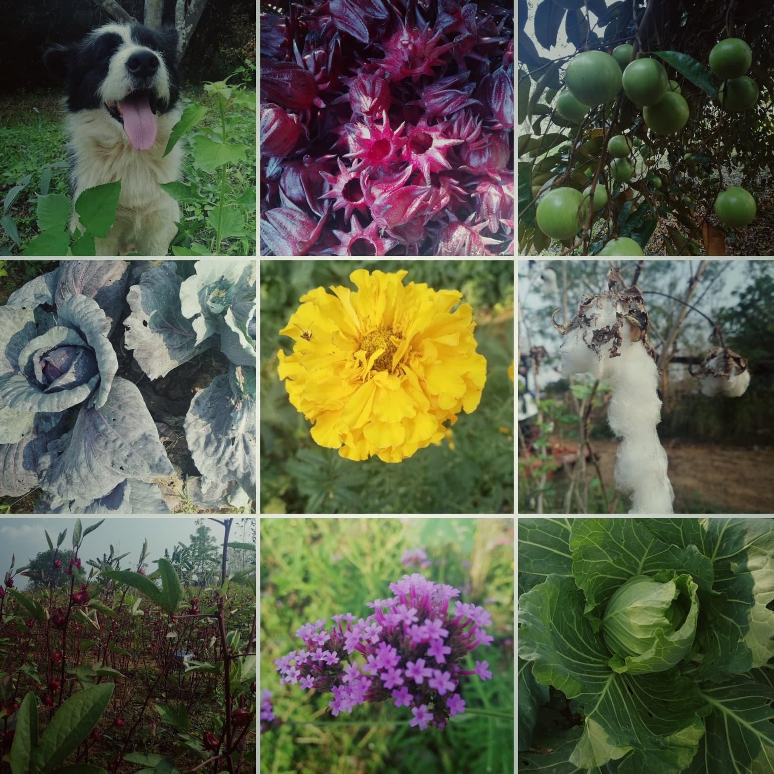 "ถ้าทำมากมันเหนื่อยเราจะไม่สนุก สุขภาพก็แย่" การทำเกษตรไม่ต้องคิดมาก อยากทำอยากปลูกทำเลยแล้วค่อย ๆ เรียนรู้ไป พี่โก้ทำไร่บนพื้นที่ทั้งหมดประมาณ 62 ไร่ (พื้นที่ของน้า) ปลูกต้นไม้ใหญ่ ส้ม ผักสลัด กระเจี๊ยบ ฝรั่ง กล้วย ฯลฯ เป็นแบบสวนผสมปลูกอย่างละเล็ก ๆ น้อยเท่าที่ดูแลไหวโดยไม่ใช้สารเคมีเลย เรายังแอบแปลกใจว่าทำไมส้มถึงออกลูกให้กิน เพราะส้มต้องใช้สารเคมีมาก