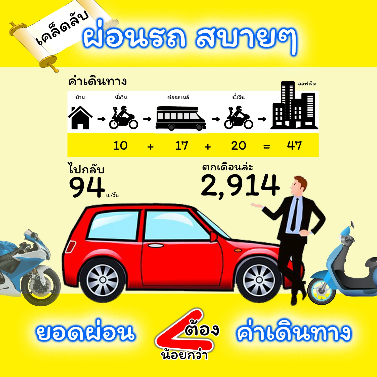 โพสนี้เรามี เคล็ดลับผ่อนรถสบายๆ ด้วยค่าเดินทาง ทำอย่างไรไปดูกัน